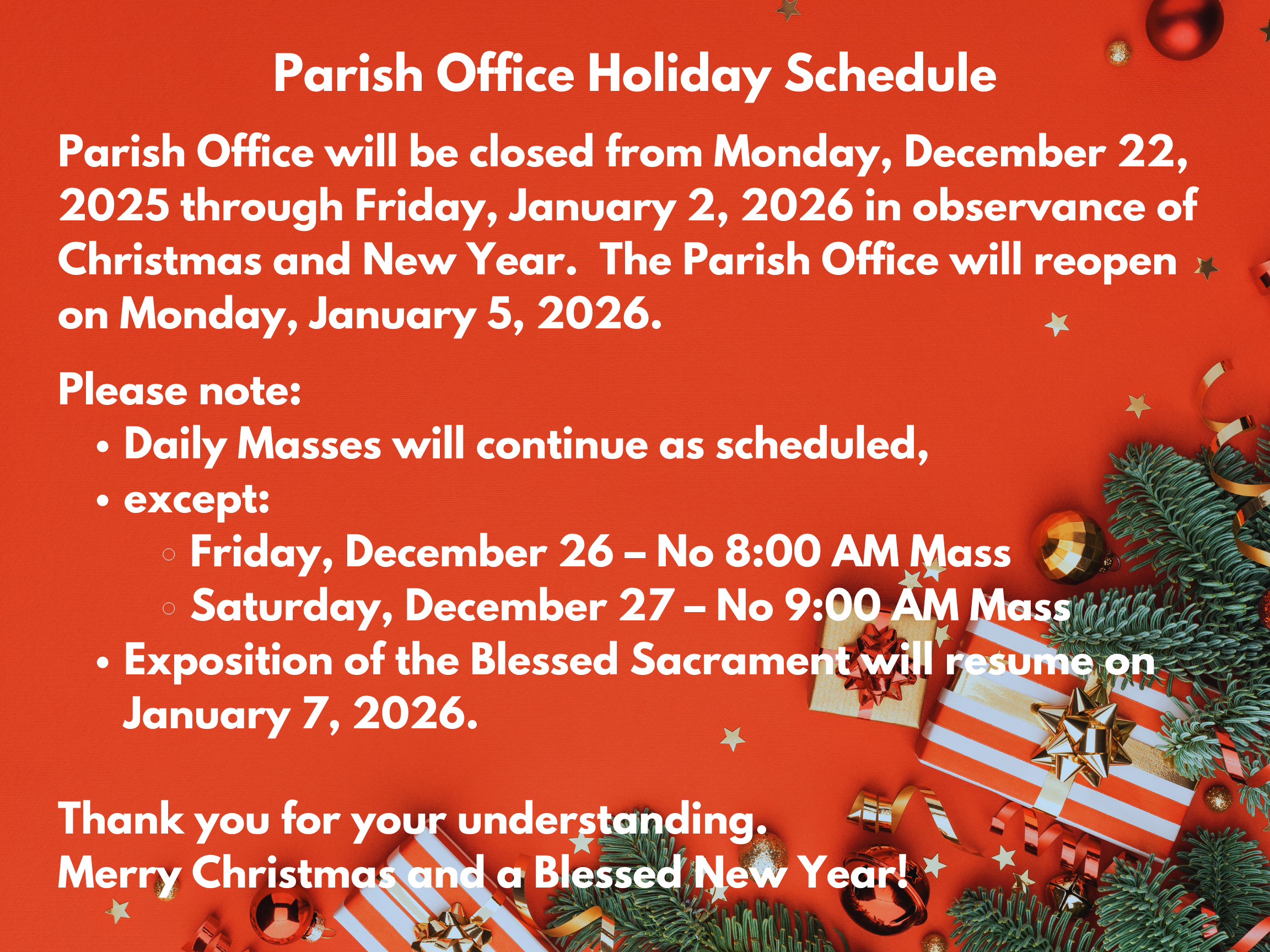 - Dec 24 2025 8:30 am - Parish Office